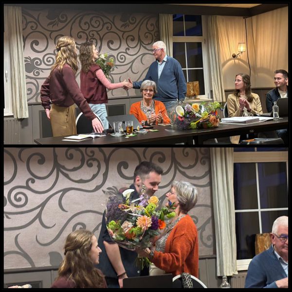 Voor alle jubilarissen mooie woorden en mede namens de dorpsraad een bloemetje ter herinnering aan het feest.